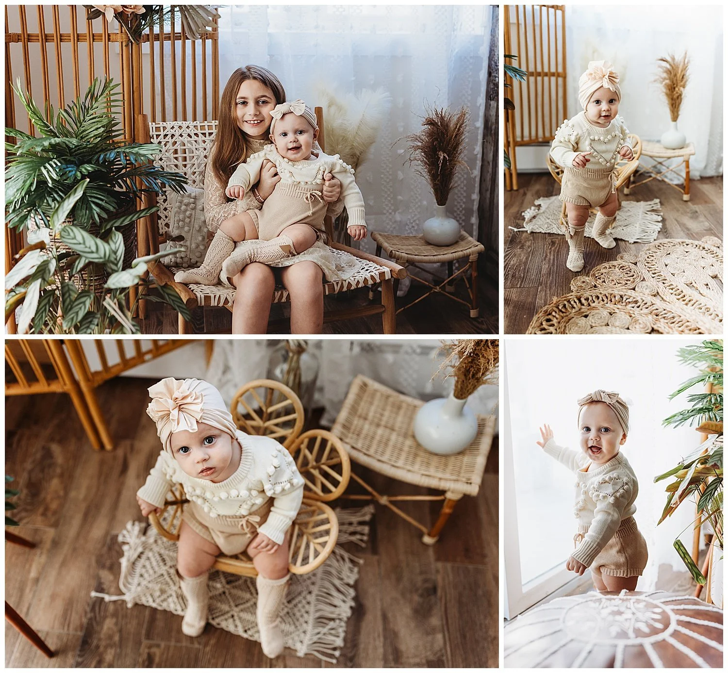 I recently photographed this beautiful little girl in the newly imagined space for her first birthday photos. Mom did not want a cake smash for this session; instead, we went for simple and timeless images of her daughter and sibling photos. I always try to make things easy for my clients, so I sent mom over links with outfit suggestions for the girls that would work well in the studio. Can you even take how adorable this little lady’s birthday ensemble is? It is too adorable.