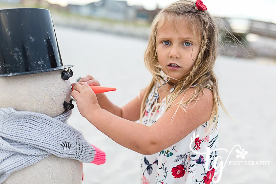 Your kids will decorate the beach snowman with a selection of fun props I provide, or you’re welcome to bring your own special touches to make it personal. The experience feels more like playtime than picture day, which makes for natural, joy-filled photos you’ll treasure for years to come.