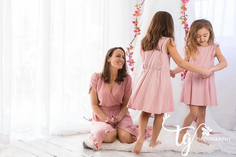I am excited to announce my winter limited edition indoor sessions. Although it is freezing outside, my winter session has the look and feel of a Spring day. This is not a standard mini session, but rather a special and limited session that I will offer on select days this winter. The set is a gorgeous glowing white set with a beautiful canopy tent adorned with pretty cherry blossoms and floral vines. When I originally came up with this idea for the set, I had the idea of offering it as an opportunity for moms to get pictures of themselves with their children and offering it only as a mommy and me session; however, once I built the set, I realized this would work for a mini birthday session, a six month sitter session, Valentine's Day photos, or even for beautiful and natural maternity photos. Like most of my studio work, the set has a very natural, classic, and simple look, which will allow me to create timeless images that capture your relationship with your children and your natural beauty.