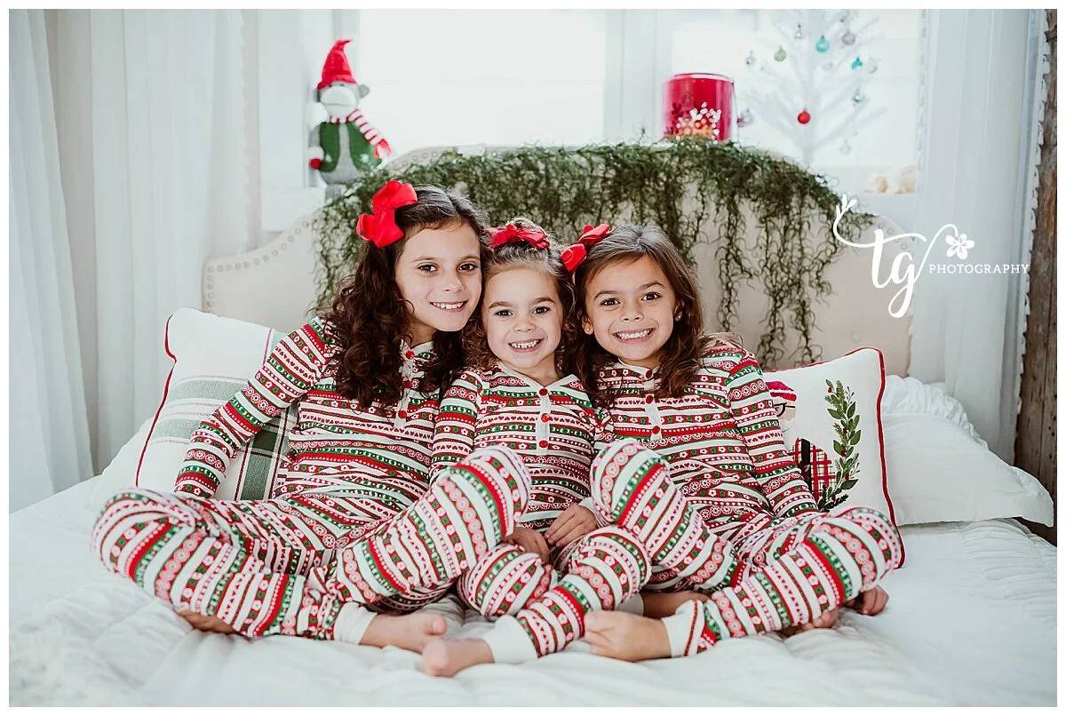 As a mom, I love to buy my girls new holiday pjs to commemorate the Christmas season. These garments are as much of a tradition in our household as putting up the Christmas tree and I always make sure to photograph the girls together in those pjs.