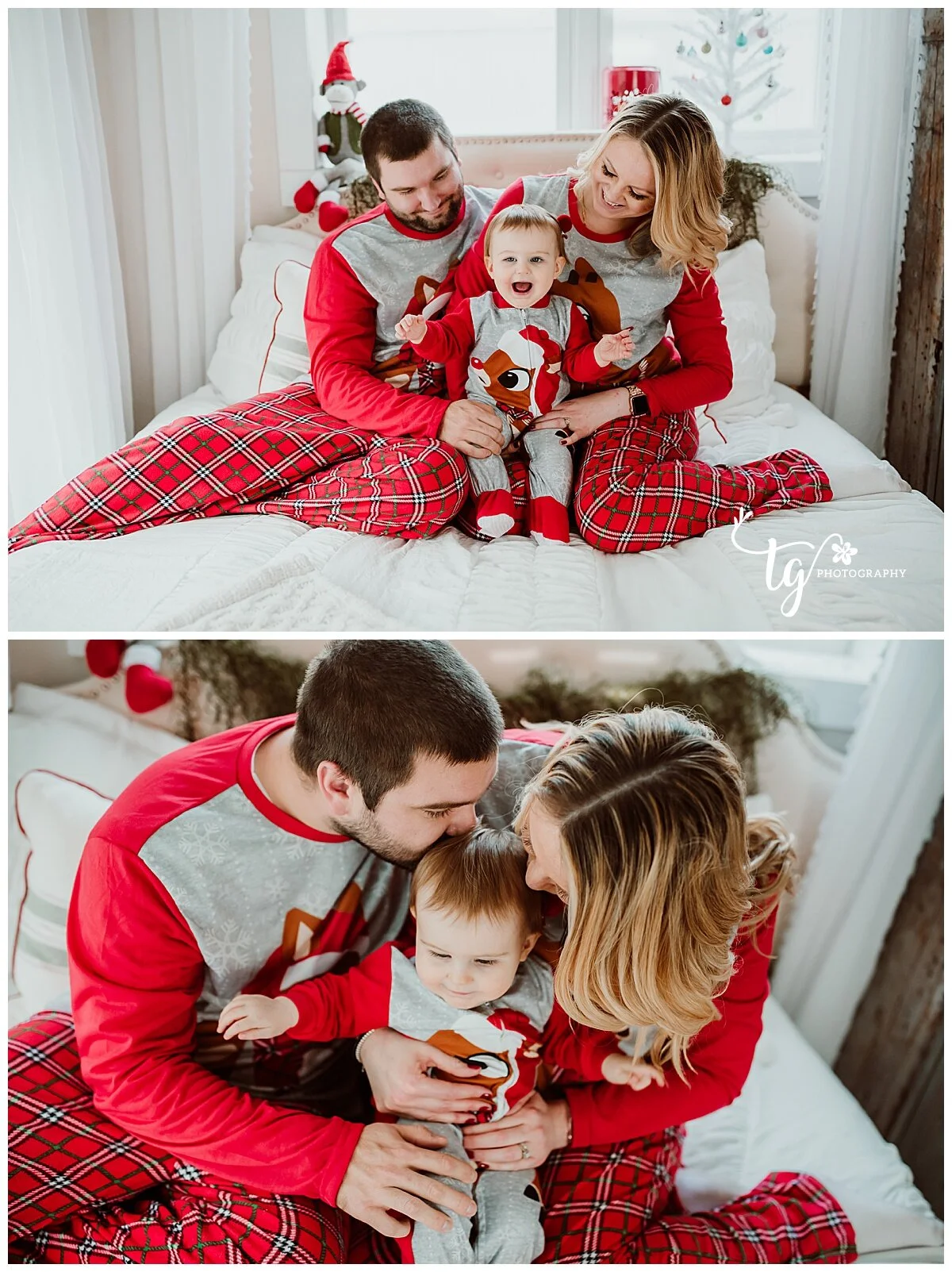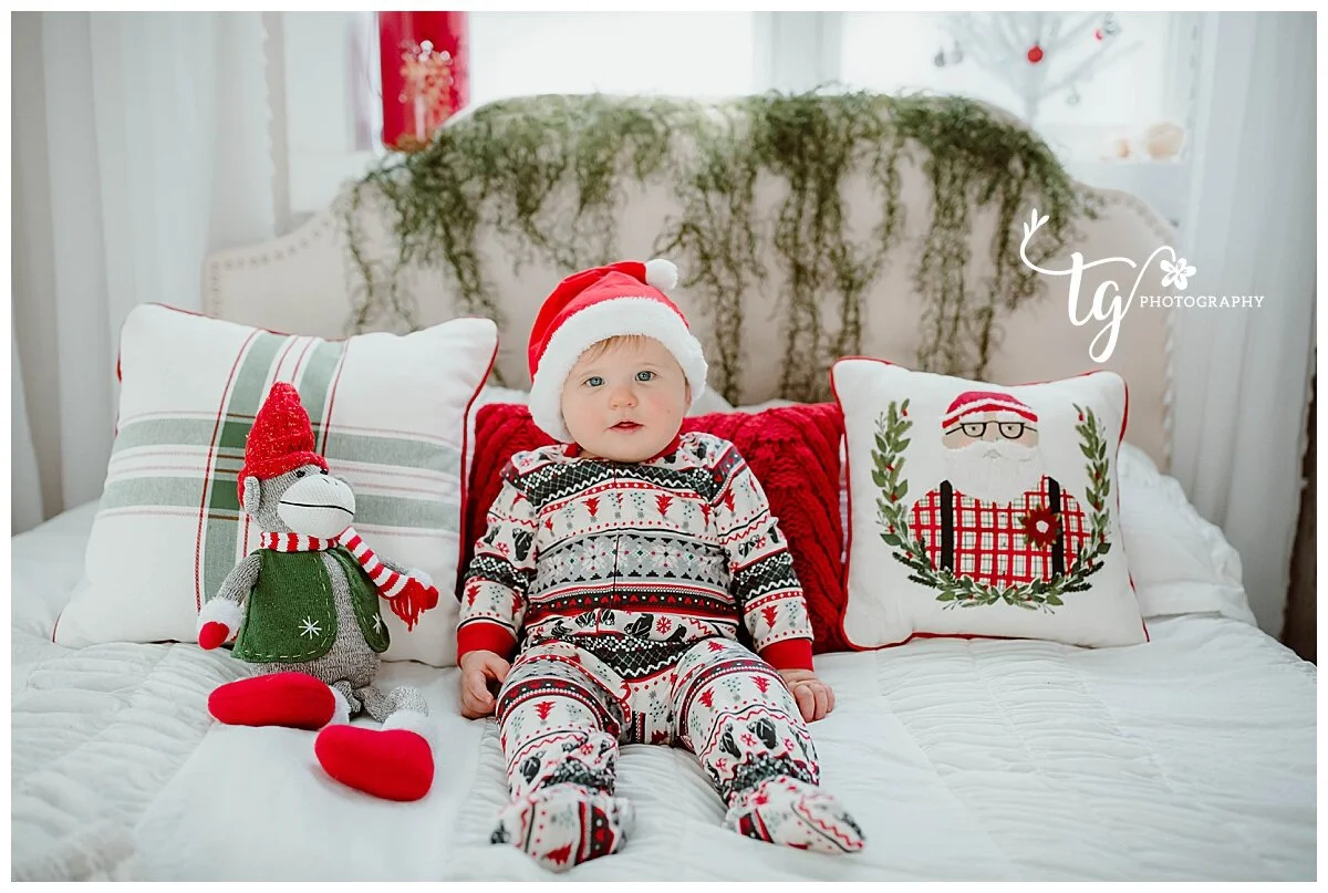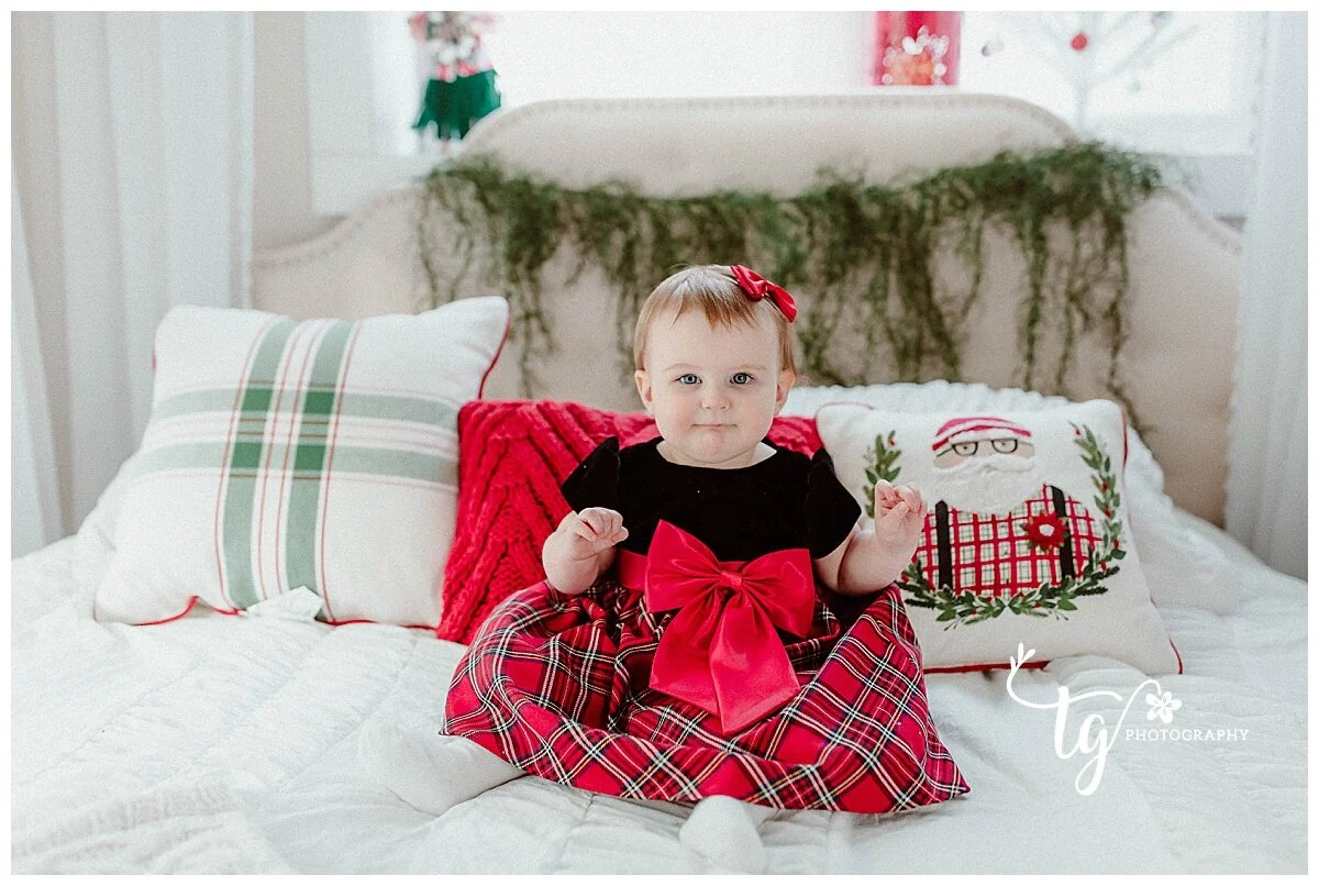 The Christmas mini session set is one that is very neutral and to create a more modern look, is not overly propped. Parents are welcome to throw on their Christmas jammies and snuggle up with their children for a family photo as well. The set works well with holiday attire in place of pajamas.