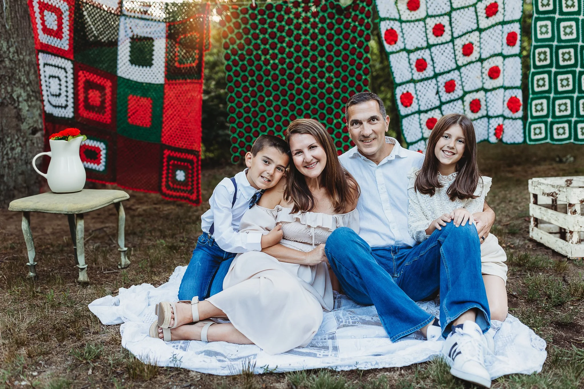 These mini sessions are filled with vintage charm. Beautiful handmade afghan blankets and quilts hang on a rustic clothesline, creating a cozy and picturesque backdrop for your family photos. Each session is styled with vintage-inspired props and wardrobe, giving your photos a timeless, nostalgic feel that you’ll treasure for years to come.