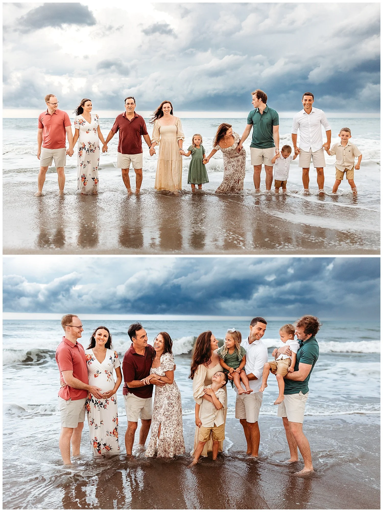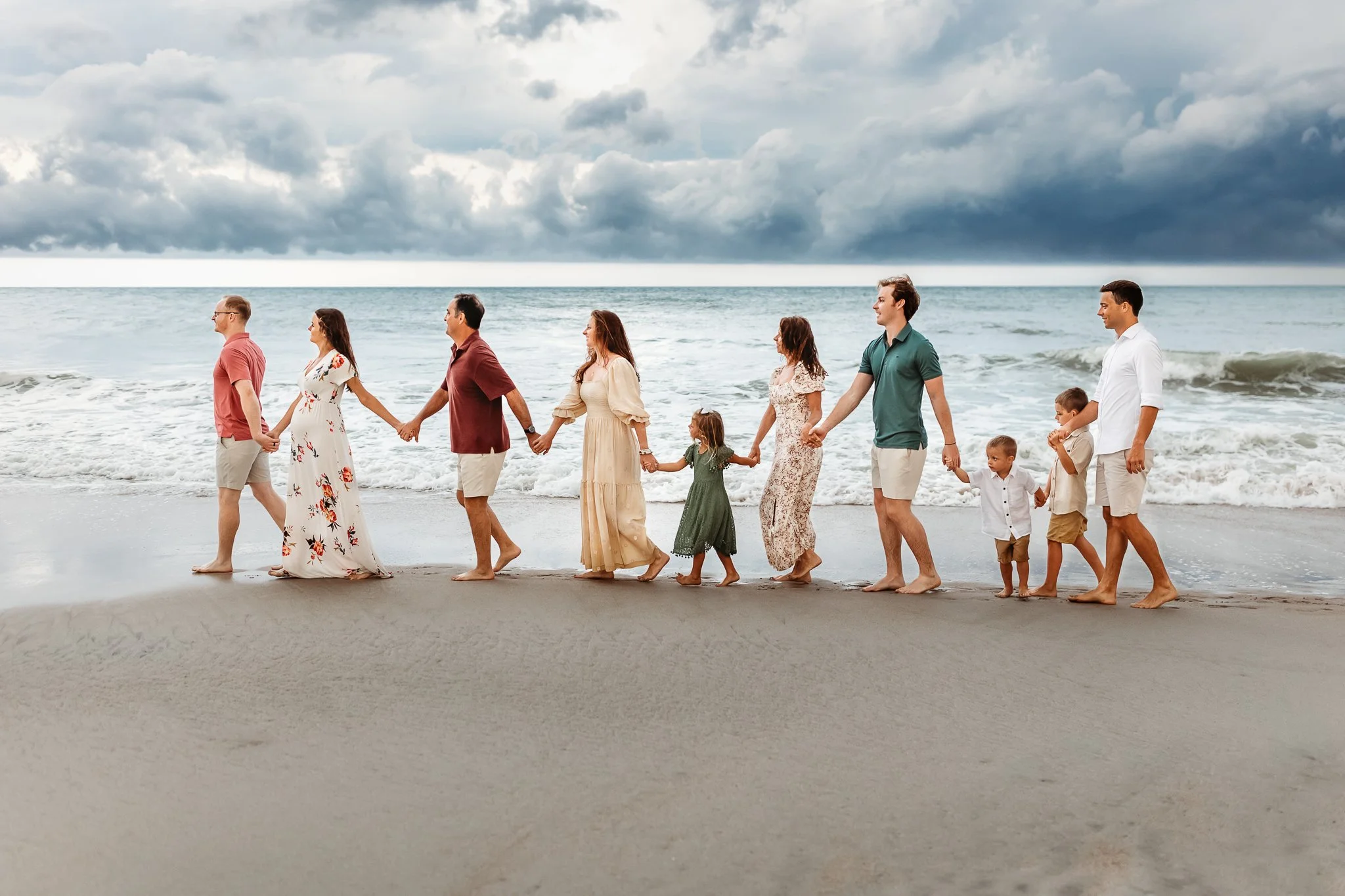 For large families, you’ll likely want several variations of groupings—such as a full family shot, smaller family units (siblings with their children, for example), and portraits of grandparents with their grandchildren.