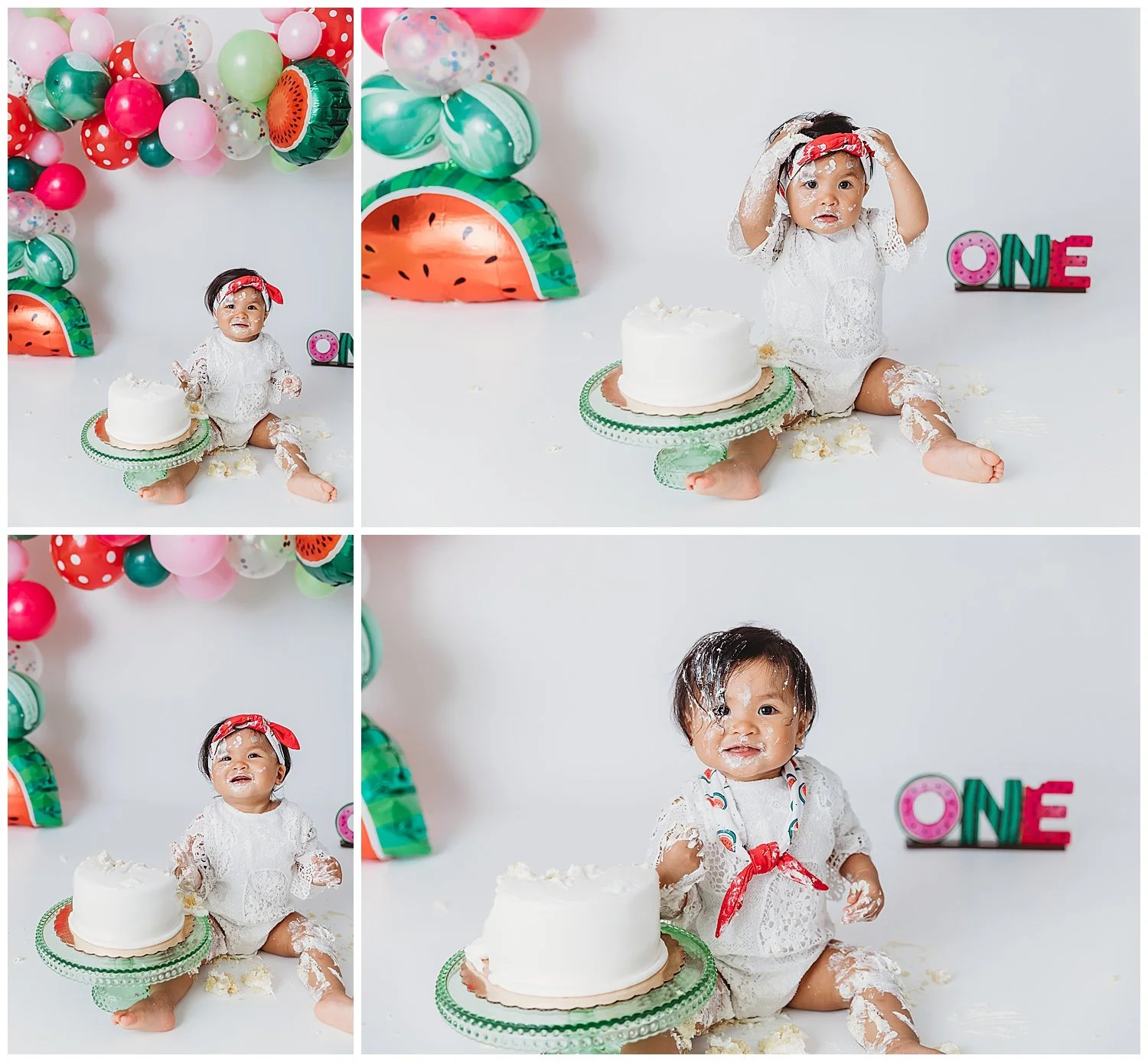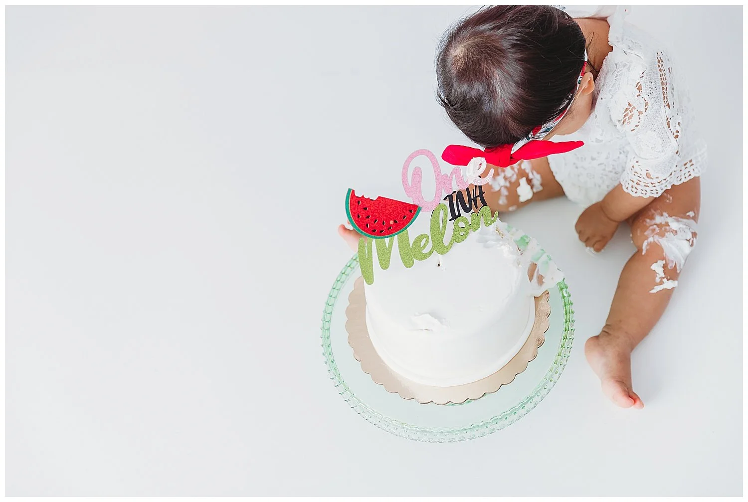 Not every baby likes cake and not every baby likes being messy. It is important to keep this in mind and roll with the punches. We will still get great photos even if baby is not interested in the cake.