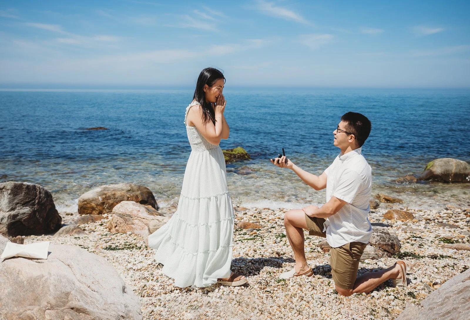 I always build in flexibility for beach proposals. If the weather looks questionable, we can adjust the timing or have a backup location ready. Some couples even embrace a rainy proposal, which can make for fun and romantic photos.