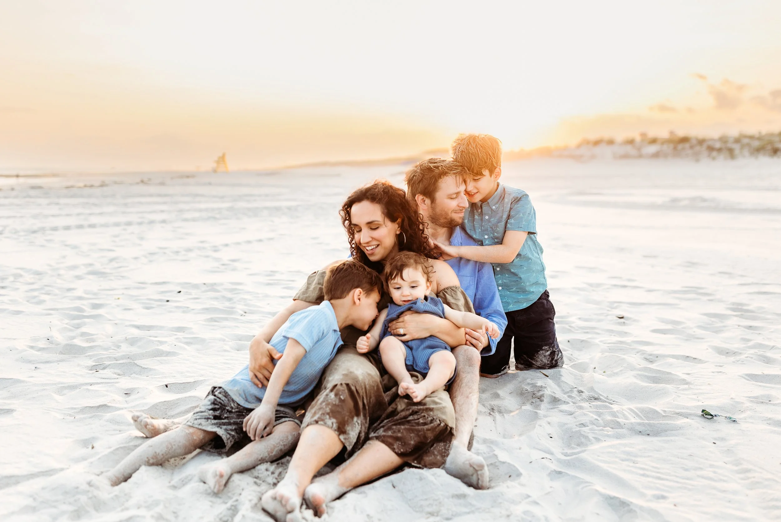 Full-Length Sunset Sessions – A private, one-hour session at the beach of your choice, with plenty of time for relaxed portraits and playful moments. Book your sunset family session.