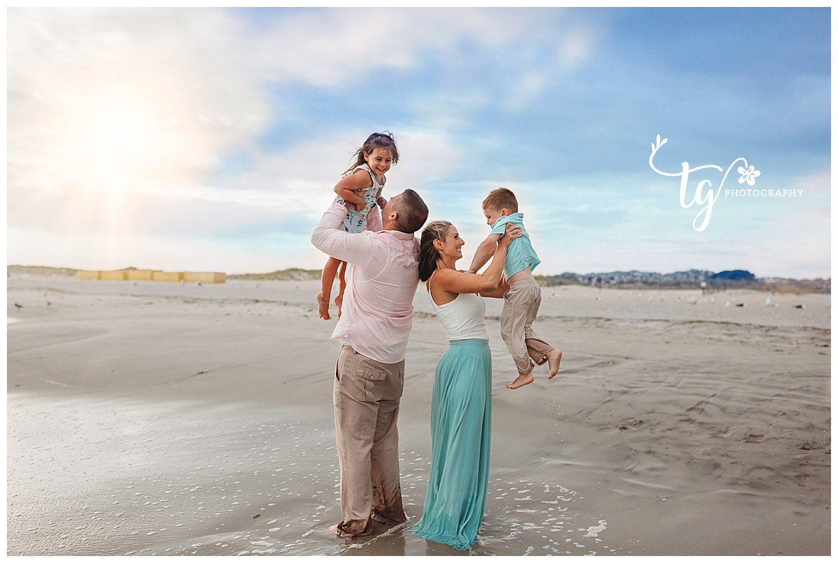 The weather in June has been spectacular! I am loving every second of this month and I am so excited that my session one beach sunset family photos sessions has begun. The beach truly is the perfect backdrop for any photo session; it provides a gorgeous natural backdrop and the ocean and sand seems to help facilitate the playful and interactive images that I love to capture.