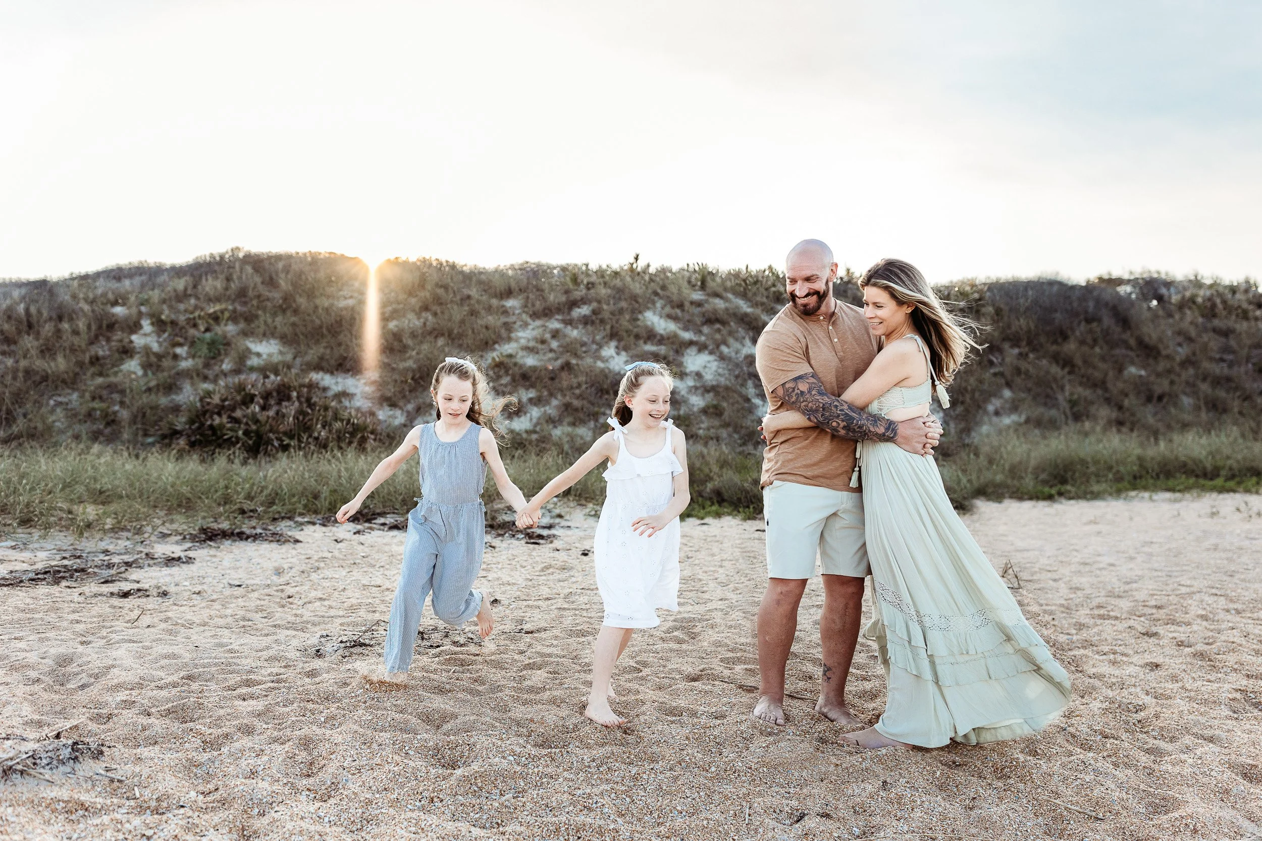 Both sunrise and sunset can be beautiful times for family photos, but they offer very different experiences — especially here in Florida.